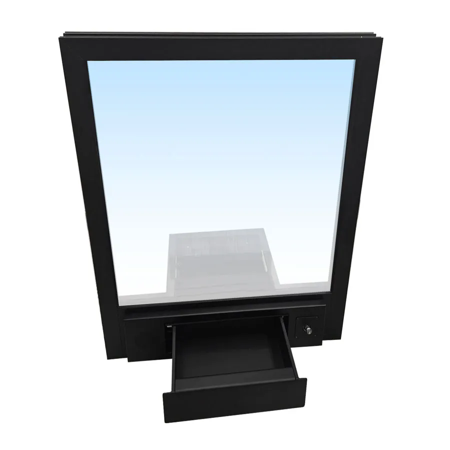 Le passe-document de façade en acier galvanisé permet d’échanger des documents, de payer à l’aide d’un TPE ou des petits objets. Il est encastré dans le plan de travail intérieur et positionné à l’extérieur à fleur de la façade. Le tiroir sort de la façade lorsqu’il est en position “ouvert”. Attention, pour la pose du passe-document côté agent, prévoir une réservation dans un plan de travail ou une fixation par des équerres. Il est à noté que ce type de guichet ne nécessite pas de plan de travail côté client.